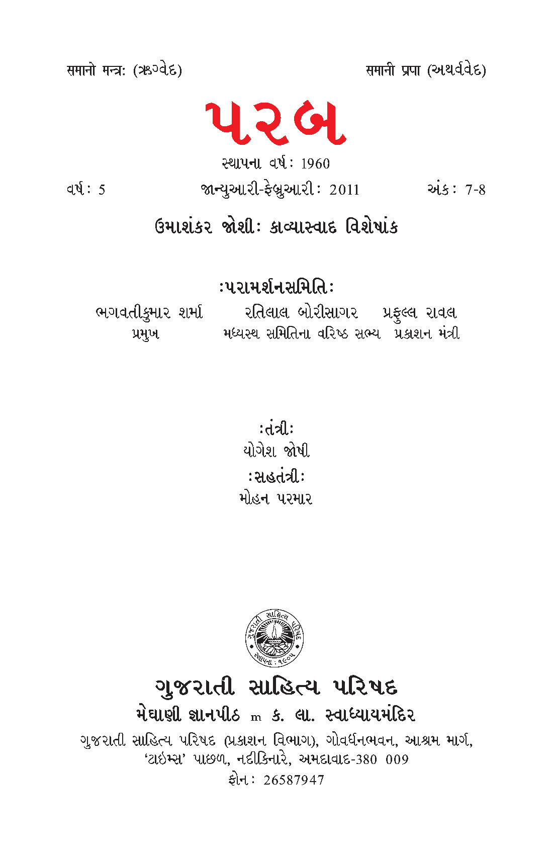 પરબ — ઉમાશંકર જોશી: કાવ્યાસ્વાદ વિશેષાંક |